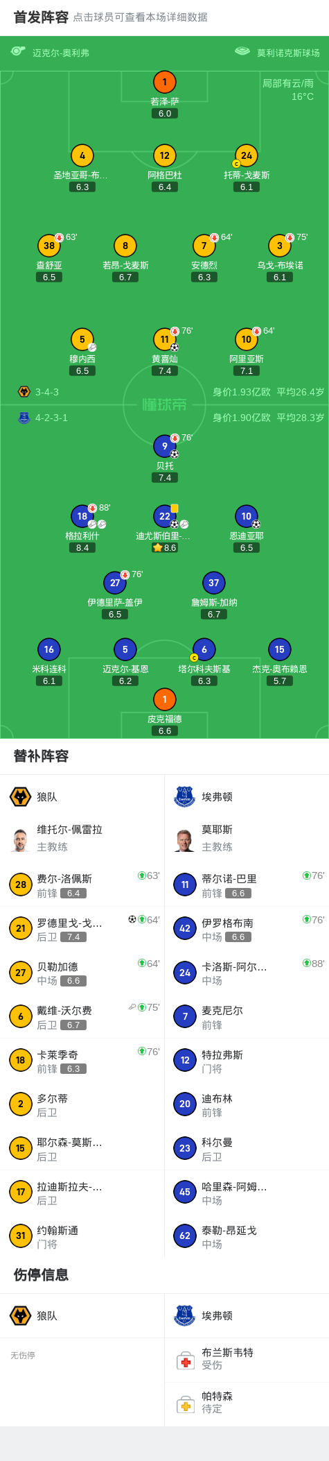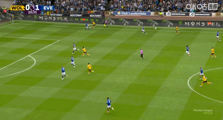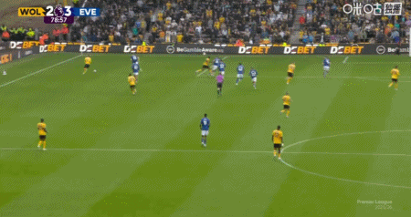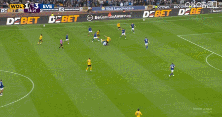 第79分钟,沃尔费传中,罗德里戈-戈麦斯抢前点推射破门,狼队2-3埃弗顿