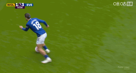 第33分钟,霍尔横传,恩迪亚耶后点破门,埃弗顿2-1狼队